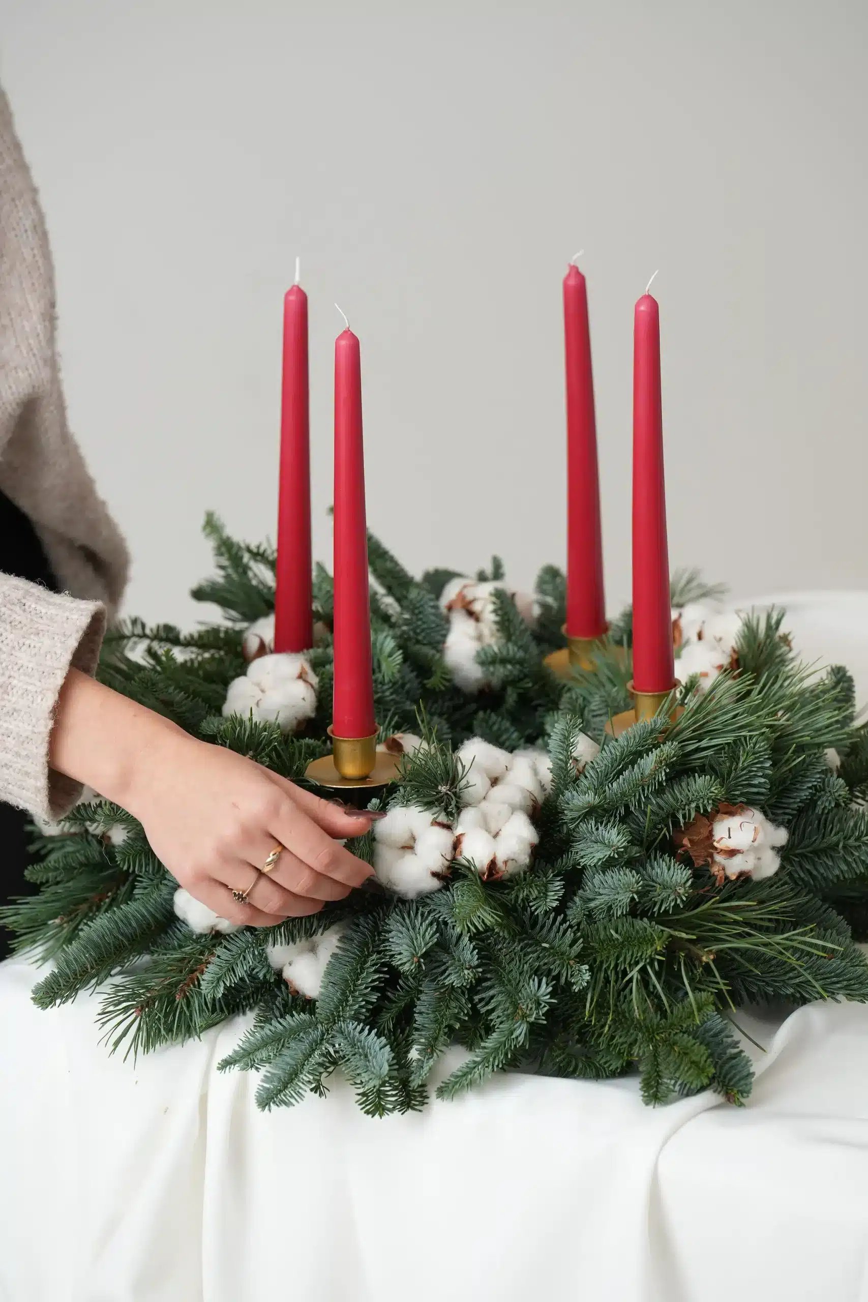 Z zimzelenimi vejicami, bombažem in štirimi ozkimi svečami ustvarja harmonijo, ki vabi družino in prijatelje, da skupaj preživijo dragocene trenutke in praznične zgodbe.